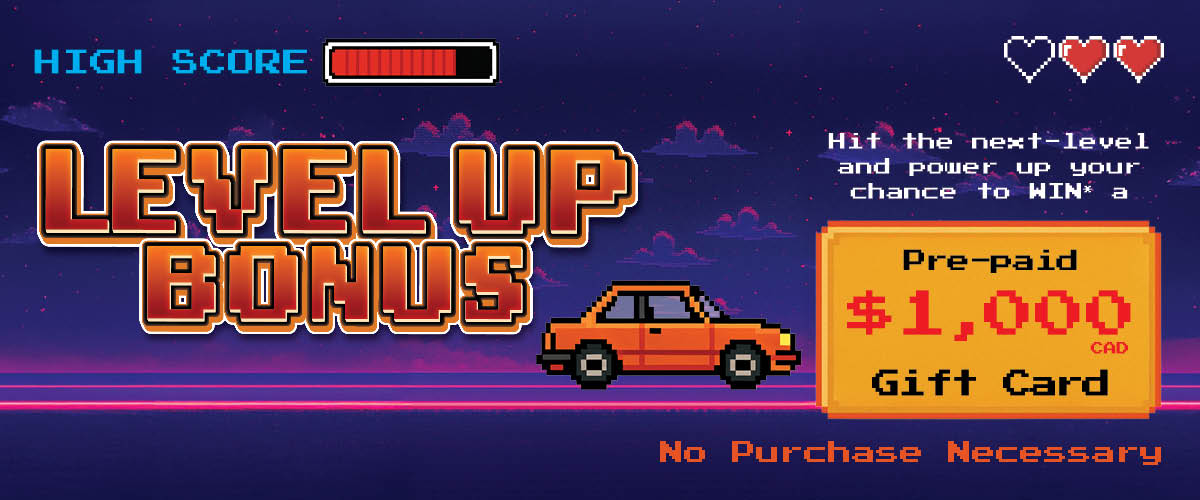Click the "Enter the Contest" button and complete the entry form and answer the survey question(s) for the chance to WIN* a $1000 CAD Pre-Paid GIFT CARDƚ amongst all participating dealers. 1 entry per person, per contest period.